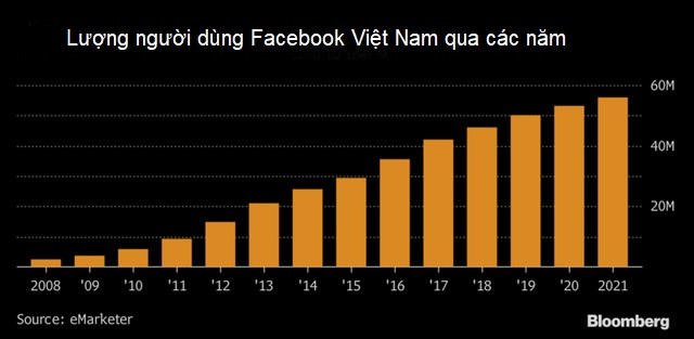Dự kiến sẽ có hơn 56 triệu người Việt Nam sử dụng Facebook vào năm 2021. Ảnh: Bloomberg.