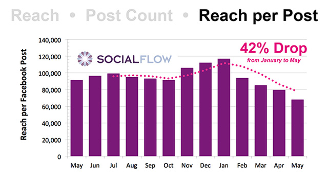 Theo một nghiên cứu thực hiện trên hơn 300 page Facebook thực hiện bởi SocialFlow, các admin page Facebook đã chứng kiến lượng người dùng tiếp cận tụt giảm đáng kể trong những tháng gần đây.